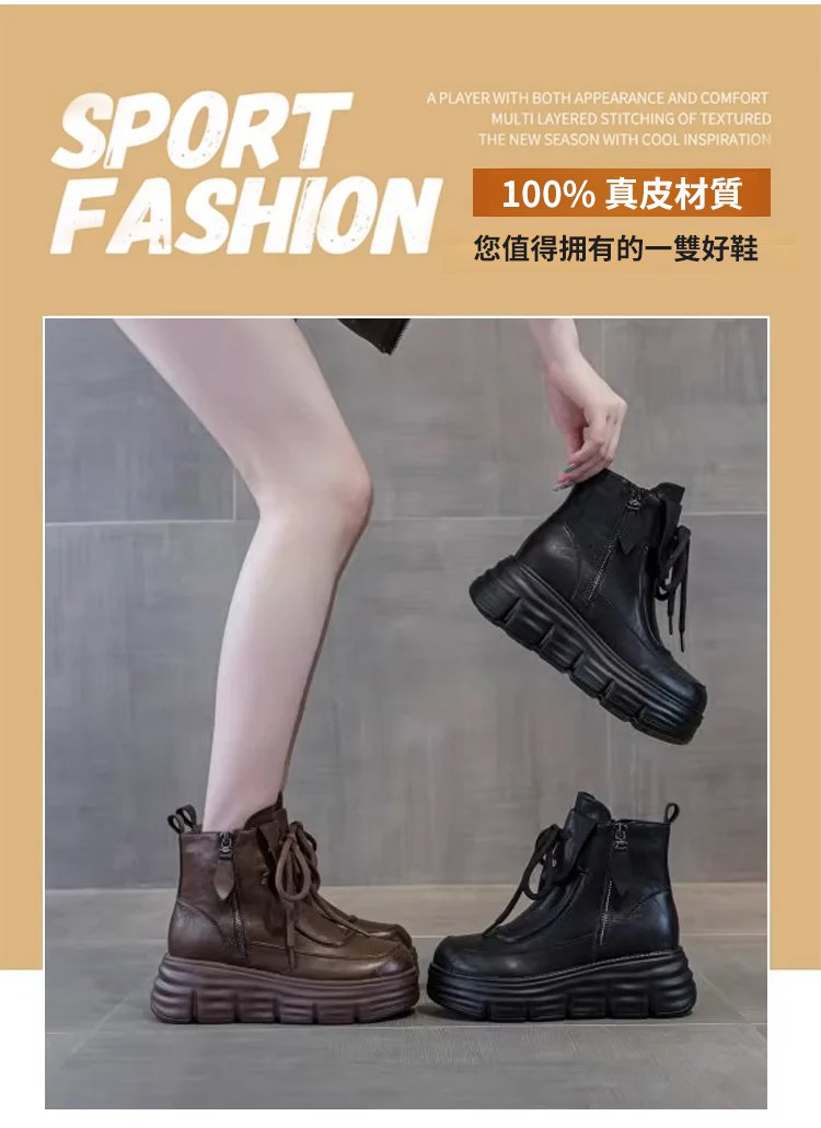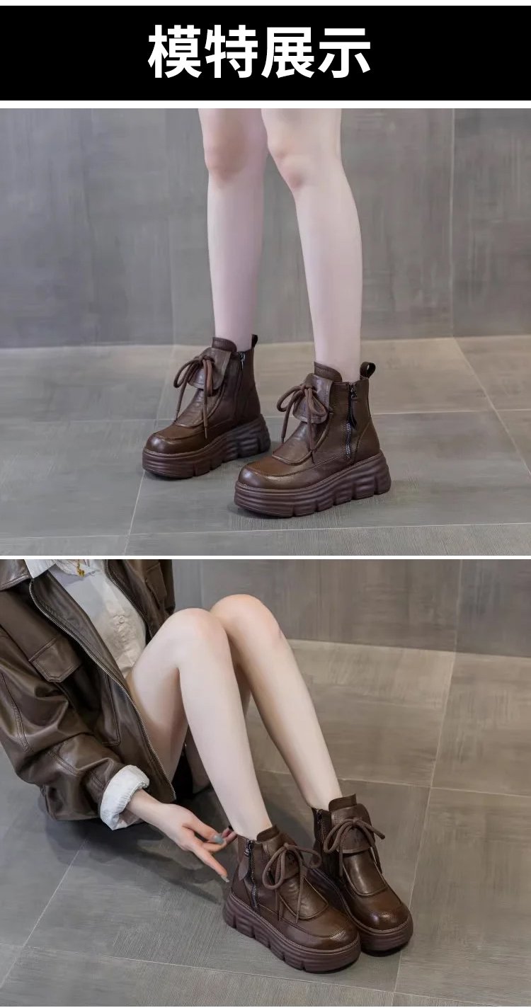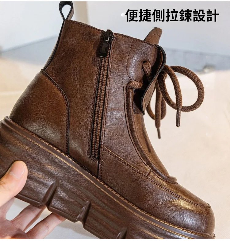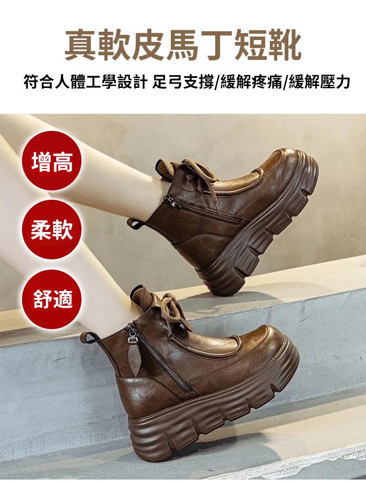 真軟皮加絨馬丁短靴