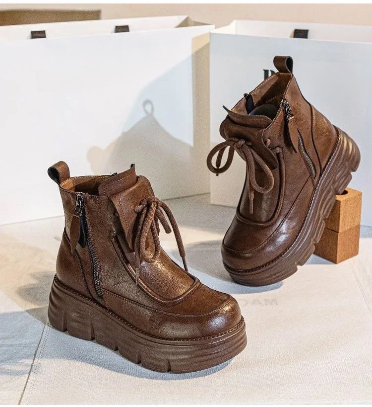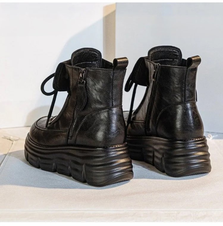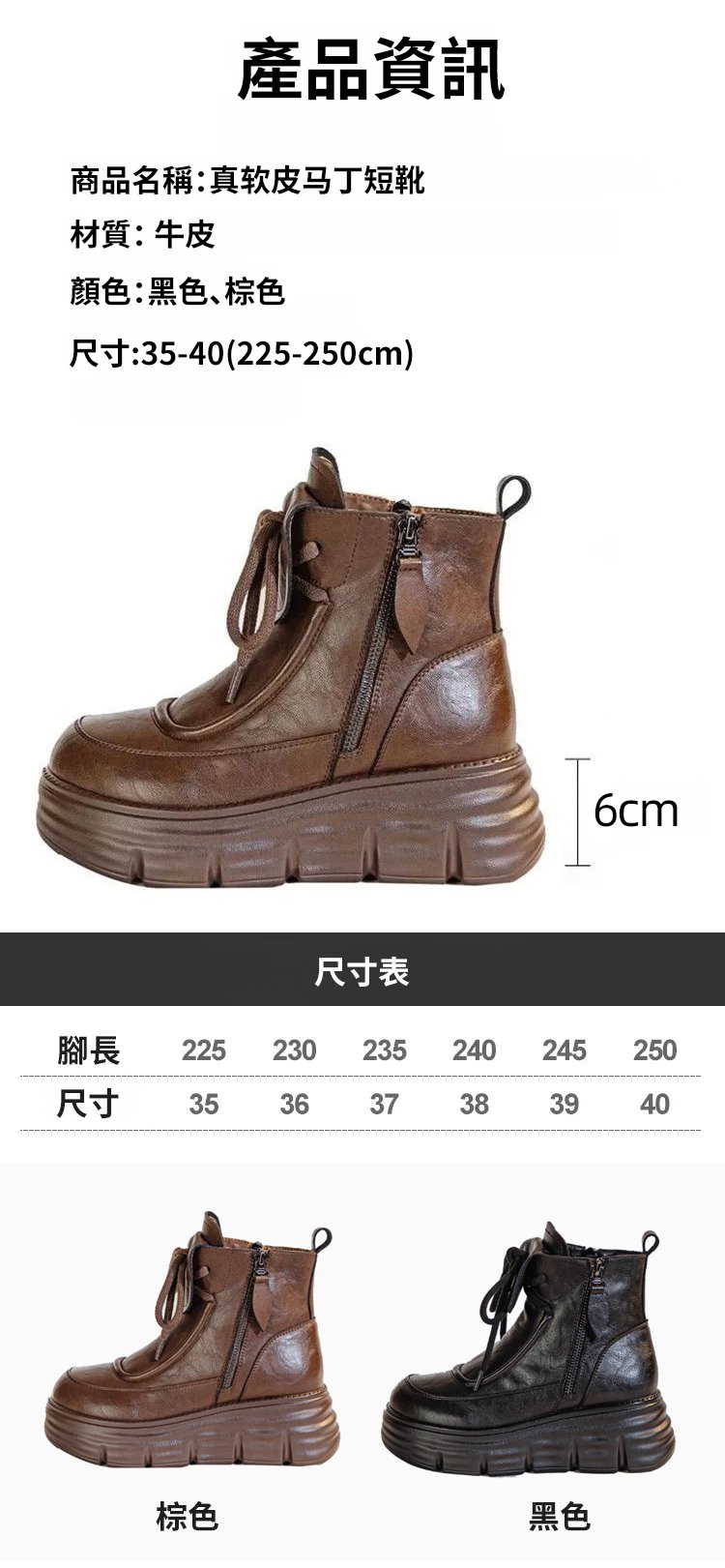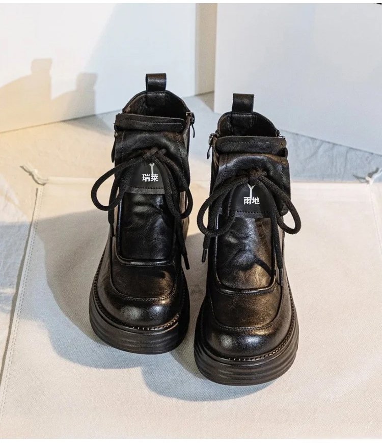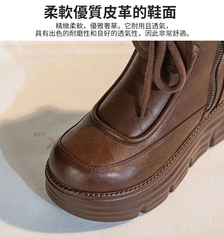 真軟皮加絨馬丁短靴