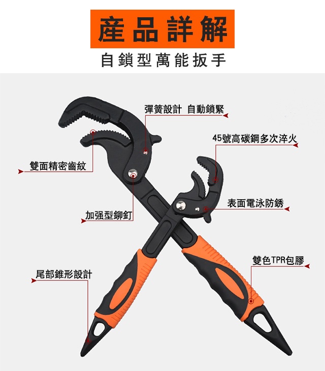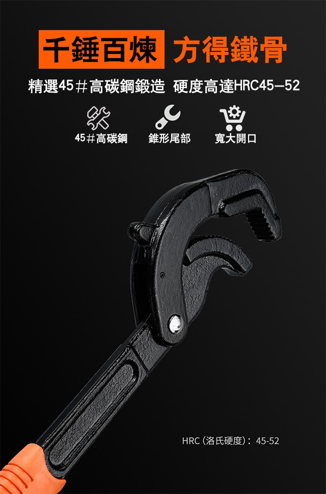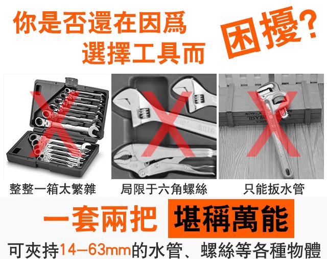 【家庭必備】萬能扳手,可夾持14-63mm,操作簡單,帶有自鎖螺旋,撬棍設計,居家工作好幫手!【限時+390再得一套】